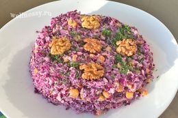 Салат из свеклы с сыром фетой (с морковью, перцем и орехами)